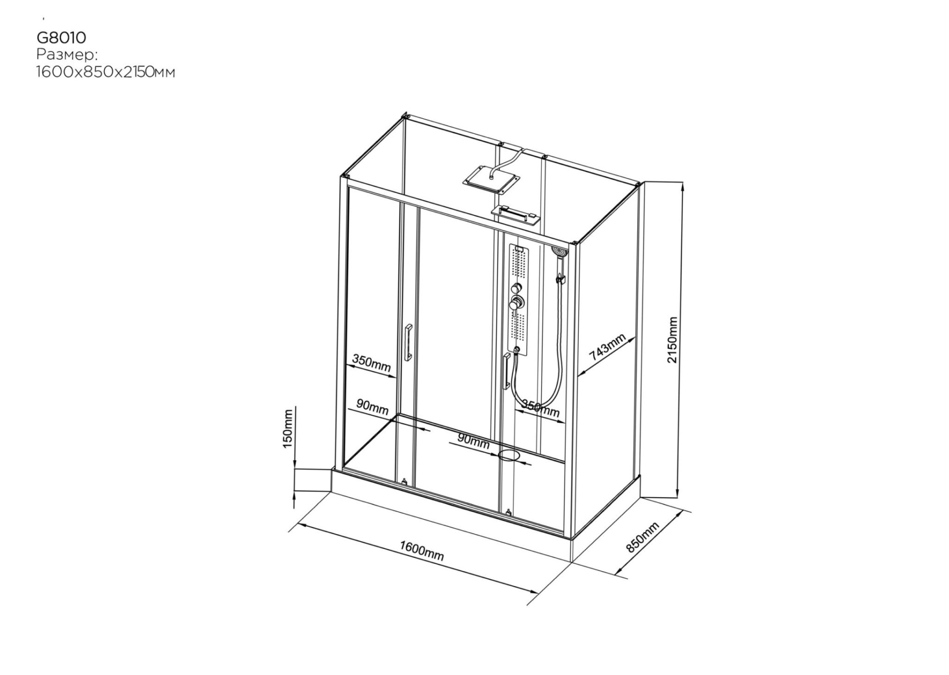 G8010 Душевая кабина 850*1600*2150 Black & White